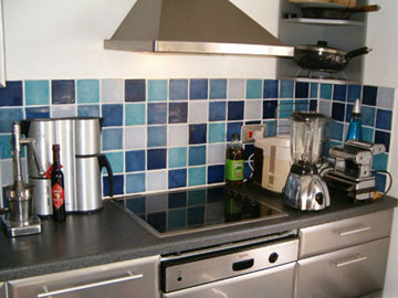 Spacious modern kitchen with fan oven, ceramic hob, microwave, fridge, freezer, washing machine, tumbledryer, eating area & lots of gadgets.