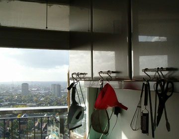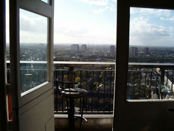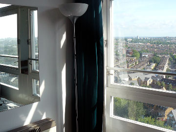 The kitchen door & living room door lead out onto a long south facing balcony with spectacular views of London.